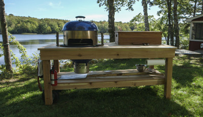 After the cottage gets double booked for the weekend, brothers Andrew and Kevin decide to make a mini-cottage on wheels. With its a flip-up awnings, pullout counters, portholes and portable combination table/heater/table, the Mobile Mini Cottage is anything but typical. It’s the perfect summer addition!