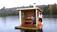 Inspired by the swim-up bars at Caribbean resorts, Andrew and Kevin set out to construct one of their own at their lakeside cottage property, highlighted by underwater seating, a floating pool table and a gleaming bartop made entirely out of nickels.