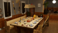 This weekend, we’re creating a cozy winter-themed retreat with our hot tub ski chalet. We’ll start by insetting our portable hot tub into a hole in the base of our old skateboard half-pipe. A circular tabletop lid made from a series of 1-by-4 strips stained a variety of colours, atop a shroud of curved plywood, will hide the hot tub within a stylish oversized coffee table. We’ll use the hot tub’s original inflatable lid along with some styrofoam billets to give the table top a floating, lazy-susan effect, so that we can easily pass around our hot chocolate cocktails and comfort food fondue before popping the lid to reveal the surprise of our hot tub centrepiece. Plush daybeds built into the hills of our old halfpipe will combine with our wood-mantled fireplace, ski tip chandelier and snowshoe wall sconces to complete a soothing after-ski experience — the perfect place to relax and reminisce after a great day on the slopes.