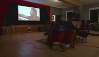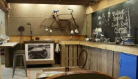 For the shower, we’ll begin with our upstairs bathroom, where we’ll add a custom shower pan tying into the existing plumbing. The shower pan will have two drains, one for normal showers that empties into the septic system, and another for our environmentally friendly infinity loop, which recycles water into an insulated reservoir. A sump pump then sends it back to our showerhead completing the loop, perfect for those days when you just don’t want to get out of the shower. Next we’ll deck it with cedar planks, clad the walls with corrugated metal, and create a full length sliding door using acrylic. And to finish it all off, we’ll add a snare drum showerhead, a dustpan flume, wall-mounted television, an umbrella book chair, a waterproof guitar, and finally, beer on tap, making this the ultimate shower experience.