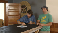 Blenders are a hassle to travel with, so Kevin and Andrew use a drill and some mason jars so they can have portable margaritas.