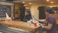 The boys take the mantra “work hard, play hard” to a whole other level by building a work bench that converts to a table tennis table. Best part? It’s all done inside a TIMBER MART store.